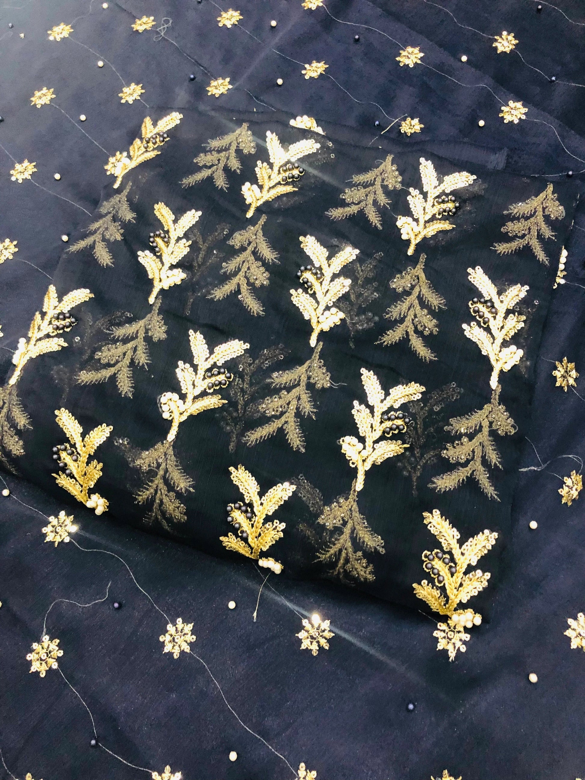 CODE: SHAFOON NAVY BLUE PEARLS DRESS